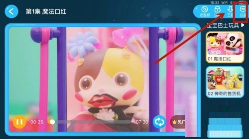 问:宝宝巴士中儿歌中播放视频怎么投屏到电视?