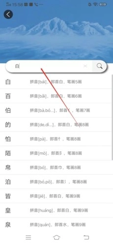 2、在搜索框内输入需要查询的字,既可以是部首、偏旁,也能是该字的拼音。