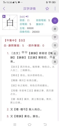 2. 详细定义:为每个汉字提供多种定义,包括原意、引申、隐喻等。