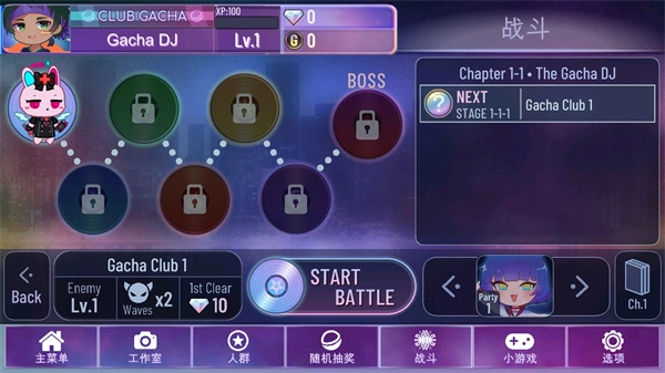 1、若想获取钻石,记得选择下方的战斗功能,挑选一个关卡即可开启战斗。