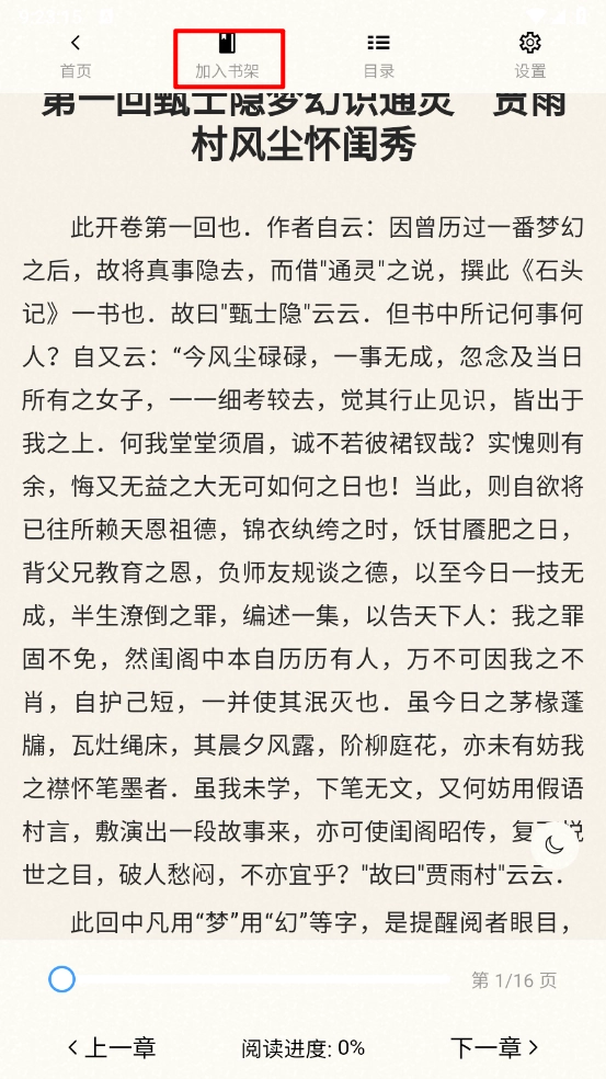 4、然后在阅读界面点击上方的"加入书架"即可。