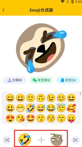 2、这里能看到超多Emoji,还能把两个Emoji合成新表情,点击下方的两个Emoji就能合成出不一样的表情啦!