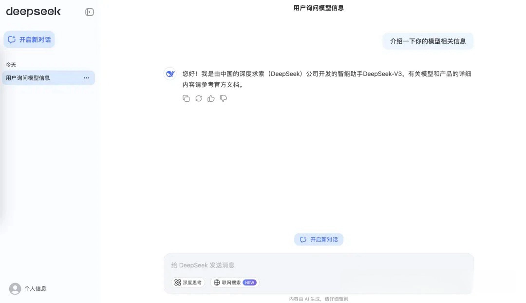 普通聊天就是通过输入提示词获取DeepSeek-V3模型反馈的内容