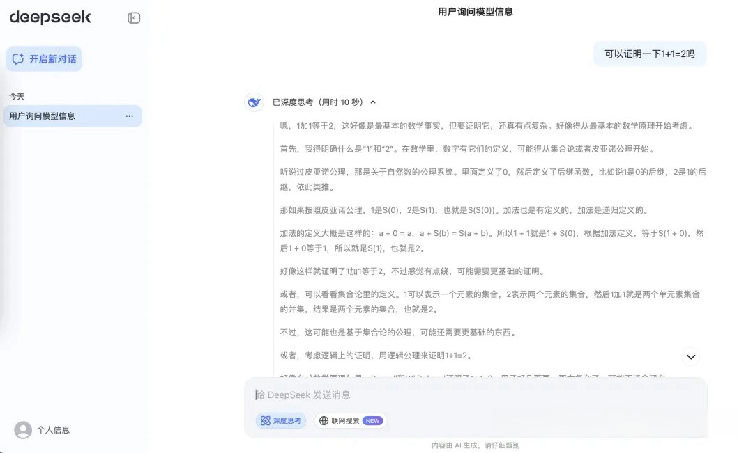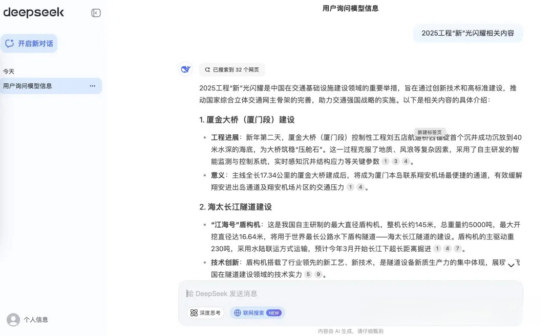 这也揭开了DeepSeek的“一键”功能,其实并非是的能力,只不过是联网搜索功能,即能够整合网络信息,并根据提问进行数据整理,可访问外部网络链接,这也是目前AI产品中普遍存在的搜索功能。