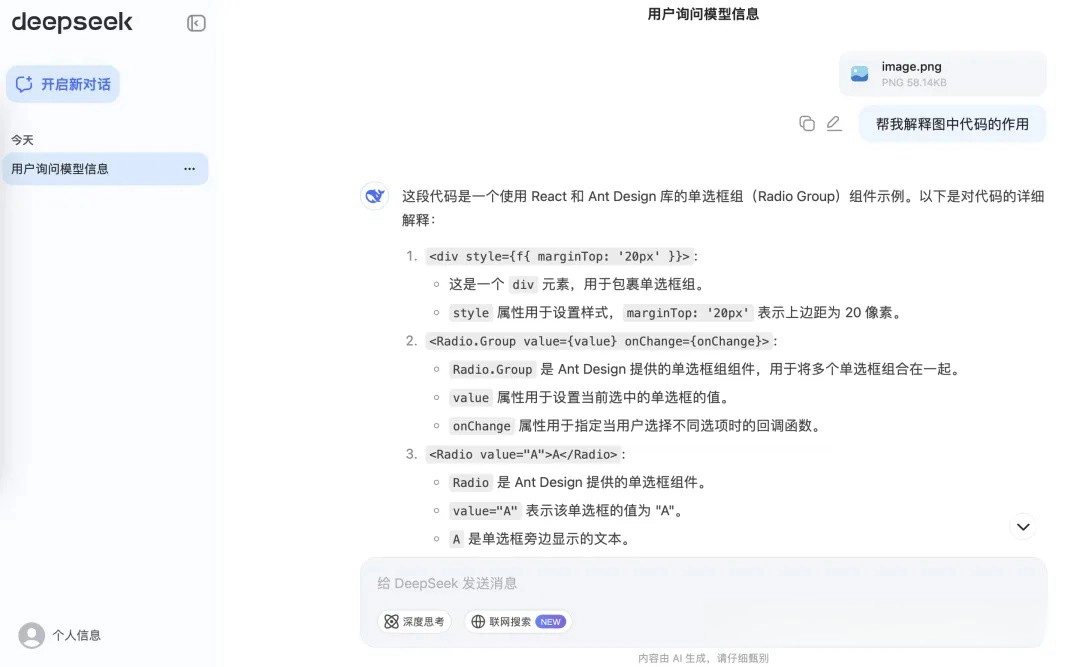 上传图片或文件,要求AI进行相关操作。DeepSeek的chat模式,暂时没有查看文件列表的功能。