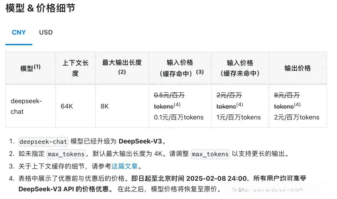 正常价位:命中缓存0.5元/百万tokens,未命中命中缓存2元/百万tokens,输出8元/百万tokens