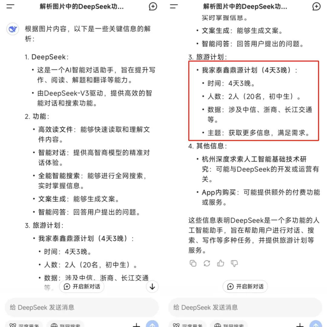 使用习惯淘宝、百度等的时候,小编习惯偏好能够在拍照的功能区同时上传或拍摄图片进行识别,在遇到DeepSeek的“拍照识别文字”和“图片识别文字”的时候还有些恍惚,是同一个功能吧?