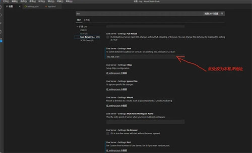 打开设置页面,搜索Live Server,找到Liver Server -->host,进入设置;