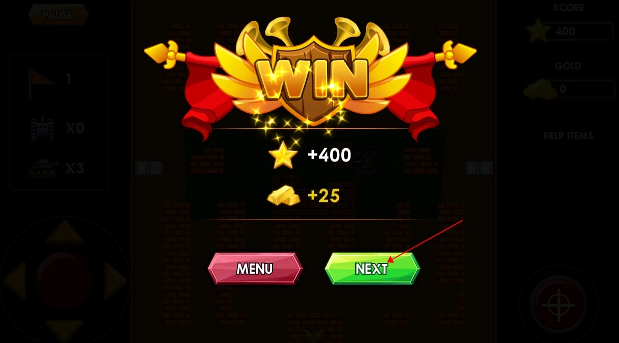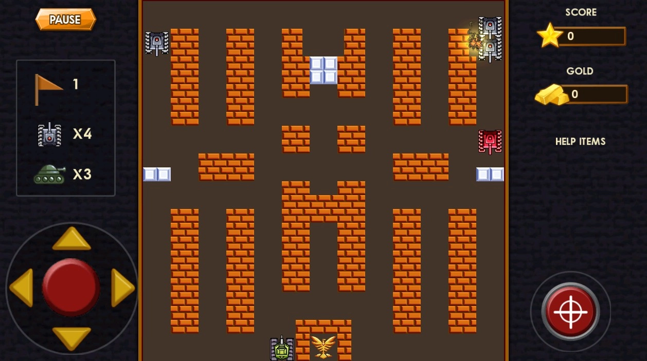 4、左边方向键控制移动,右边红色按钮发射子弹。