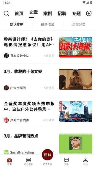 1、文章板块:汇聚了广告领域达人最新发布的时效性文章