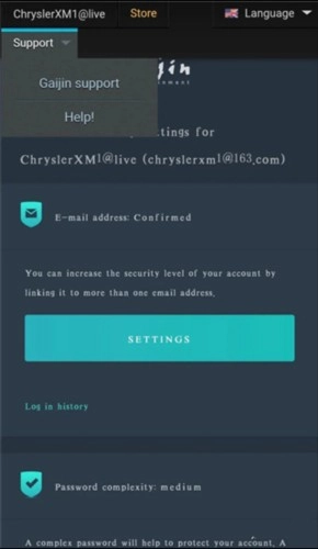 7、已经完成绑定的直接查看第二张图,点击左上角的support选项,选择gayjin support即可。