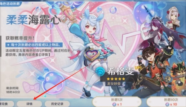 2、接着进入游戏,点击抽卡页面左下方的“查看详情”,再选择“历史记录”。