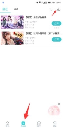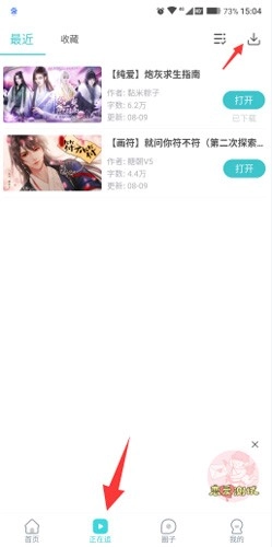 首先,我们点击【正在追】右上角箭头所指的方向。