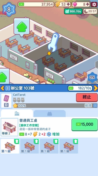 3、不断完善你的办公大楼,赚取更多利润。