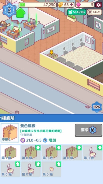 这是一款画风可爱的小猫经营模拟游戏,整体玩法十分休闲,获取资源也很容易,不用费什么力气就能赚到大量资金用来升级,短时间内就能体验到游戏的乐趣。