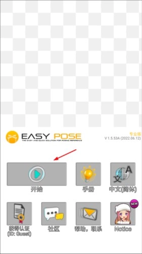 1、第一步先打开easy poser应用,接着点击开始按钮;