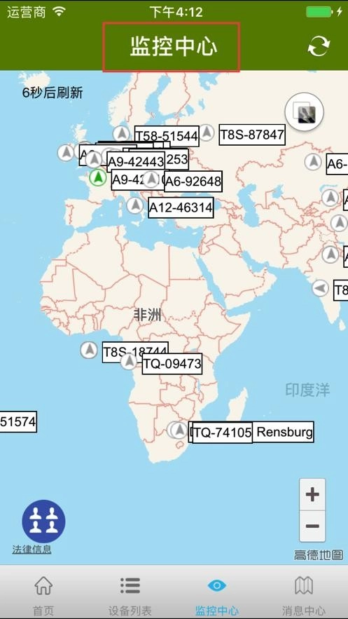 3、点击底部监控中心,查看地图上各定位设备的分布位置及标识信息。