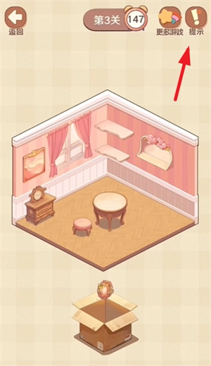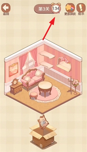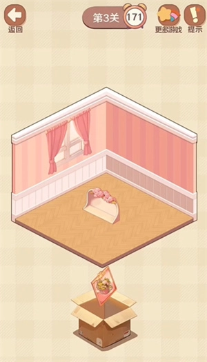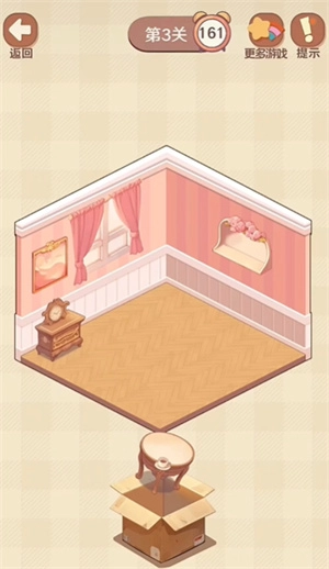 我们点击纸箱后,会看到里面有不少需要摆放的物品,只需把这些物品放到房间里对应的正确位置就行。等所有物品都摆放完毕,这一关就算通过了。不过要注意,时间是唯一的限制因素,我们得在规定时间内完成所有操作才行。