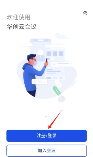 1.并打开华创云会议应用。在登录界面点击“注册/登录”