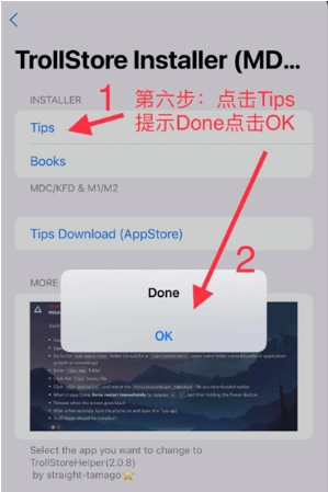 6. 然后点击Tips选项,在提示Done后点击OK按钮(其他选项不要乱动)。