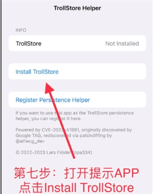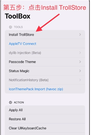 5. 在菜单中点击Install Troll Store选项(其他选项不要乱动)。