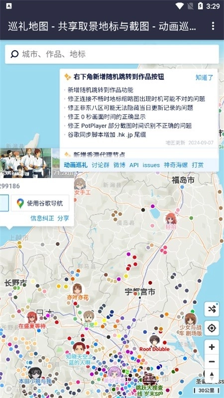 2、专注于把动画、电影这类虚拟作品里的景点和现实世界关联起来,给众多粉丝提供了方便的探访路线。