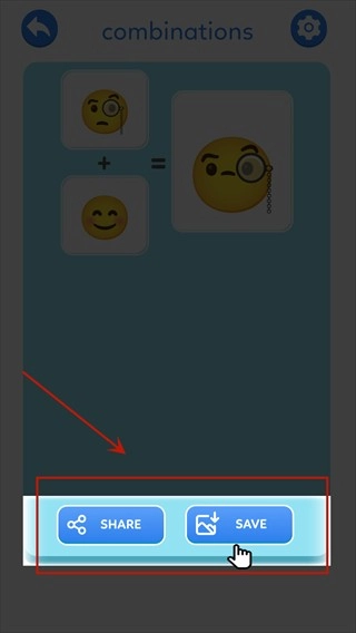 1、在本站下载并安装最新版的emoji表情合成器后,打开该应用并点击图示位置,即可开始合成emoji表情。
