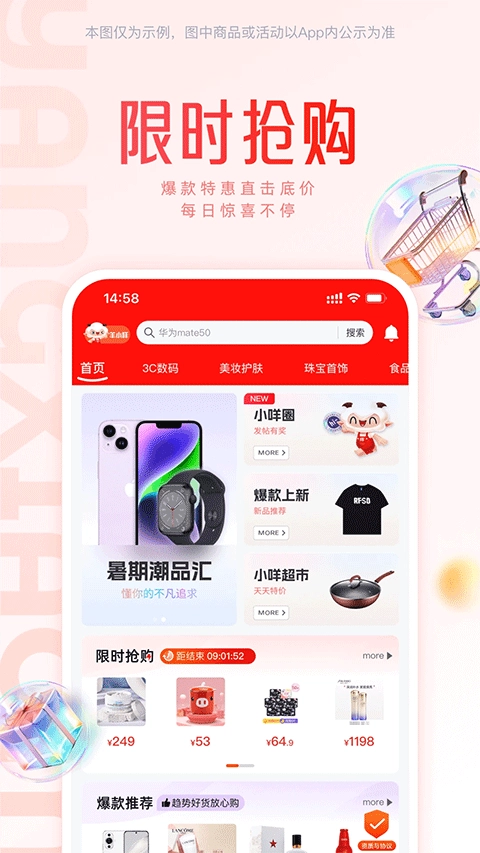 6、商城覆盖各个品类,满足用户多种购物需求,另有超多购物津贴等你来领,开通享花卡还可以体验先消费后还款的购物体验。