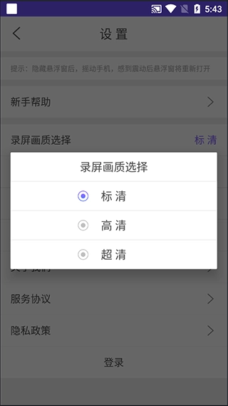 8、在设置中您可以选择录制视频的清晰度。