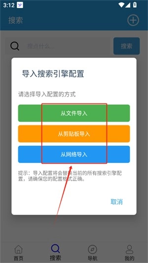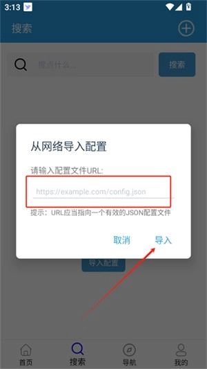 3、选择从网络导入,输入输入配置文件URL,点击导入即可