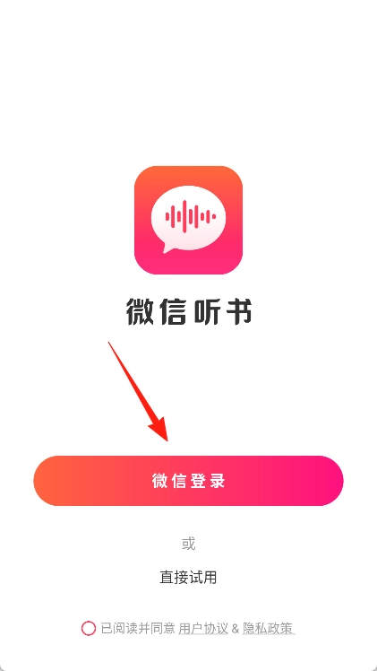 1、在手机上启动微信听书应用,使用个人微信账号完成一键登录操作。