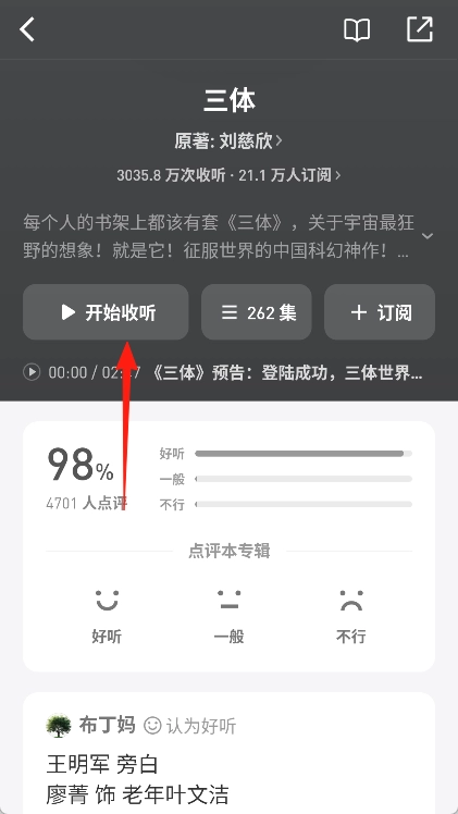 3、选择自己感兴趣的内容,单击即可进入有声节目的详细页面。