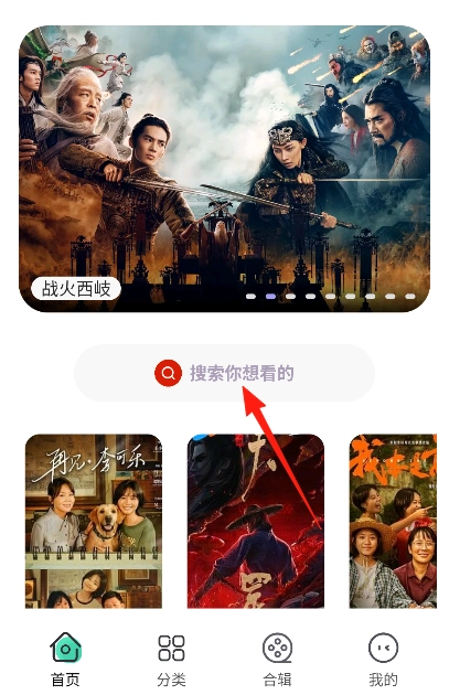 1、在手机上打开永久影视,点击首页中间的搜索栏。