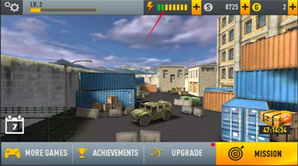 4、在这款游戏里,每参与一个任务都会消耗一定的体力,体力是随时间自动回复的,当然您也可以通过付费购买来补充体力。需要注意的是,当体力耗尽时,您将无法参加任何任务,因此建议您选择更具针对性的任务去完成,以便获取奖励并购买新武器。