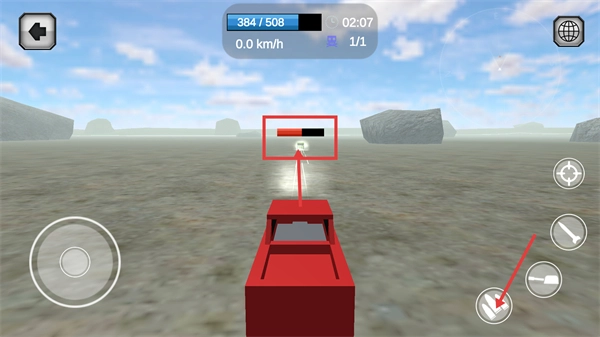 2、进入驾驶场景后,通过左侧摇杆控制车辆移动,留意顶部【508/508】的状态数值,右侧功能按钮可辅助操作当前场景。