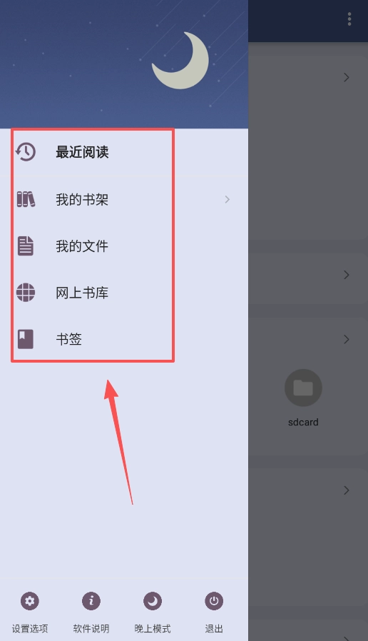 1、应用启动后,建议你先借助“我的文件”模块查找并导入书籍,该模块支持本地存储以及WebDav等云端服务。