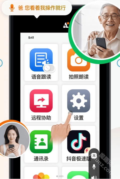 远程协助:远程连接手机设备,实现远程操作,方便长辈。