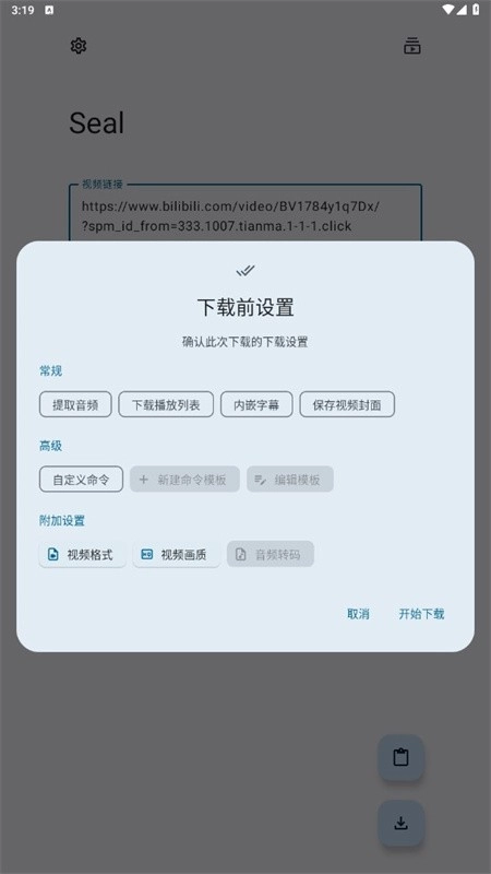 1、启动Seal软件,进入主界面后,点击粘贴按钮,即可从剪贴板中获取已复制的链接。