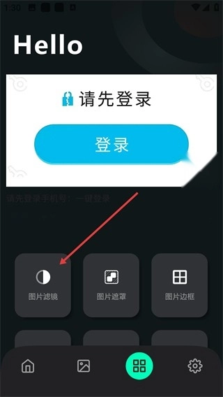 2、进入工具界面后,可使用【图片滤镜】【图片遮罩】等图片编辑工具。