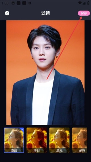 在滤镜编辑界面,你可以挑选【落日】【晨光】这类滤镜效果,调整好之后点击右上角的【保存】按钮,就能顺利完成图片滤镜的编辑和保存操作了。
