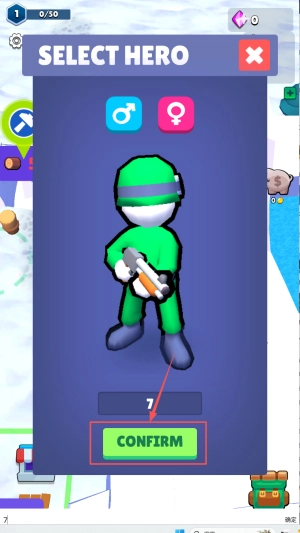 1、选择角色:进入游戏后,点击“SELECT HERO”按钮,挑选你心仪的角色,接着点击“CONFIRM”按钮完成选择确认。