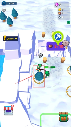 2、角色移动操作:在游戏地图内,玩家可通过点击屏幕的方式操控角色移动,需依照箭头所指的方向行进,并收集地图上分布的各类资源。