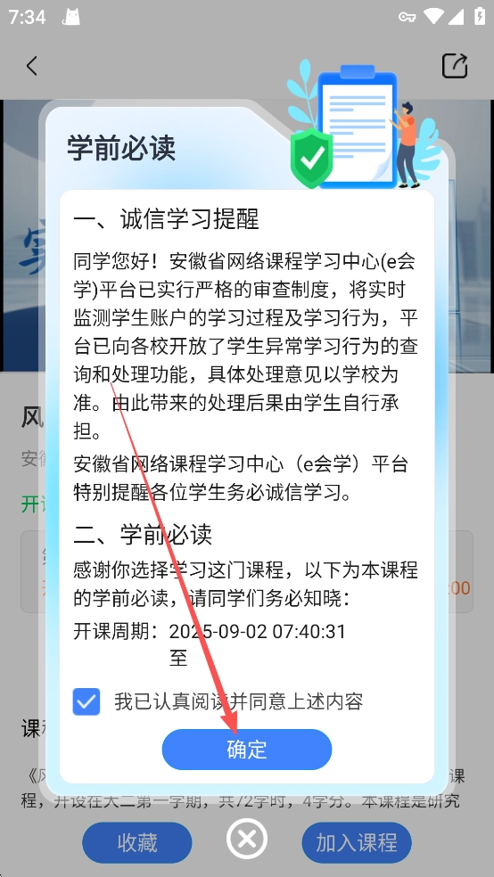 3、阅读好学前必读后,点击确定即可成功加入