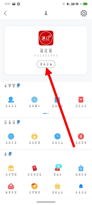 1、打开通辽团应用,点击界面左上角的头像图标,即可进入个人中心页面。