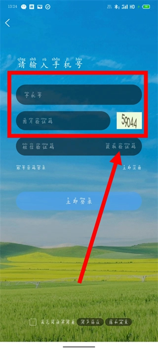 3、在登录页面,输入手机号和图形验证码,点击获取验证码。