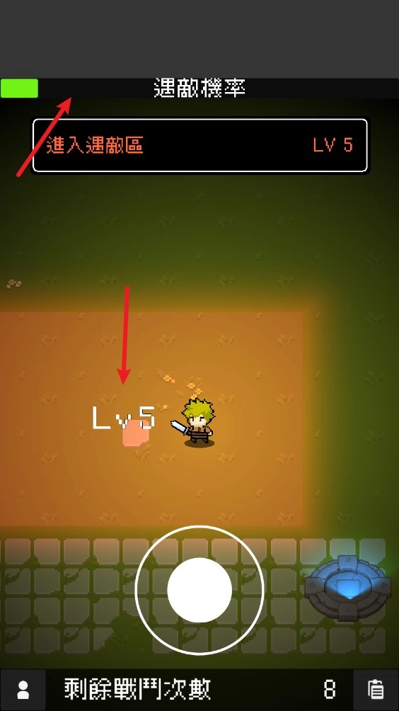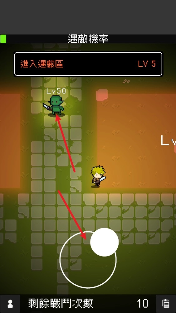 进入场景后,我们借助下方的虚拟摇杆来移动,场景里分布着不少不同等级的怪物,要挑选合适的等级发起挑战。