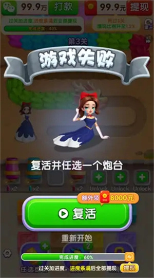 1、绝对不能让怪物攻击到公主,不然闯关就会失败,但可以借助复活功能,这样就能继续挑战了。