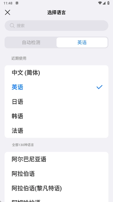 1、在翻译页面,点击上面的语言