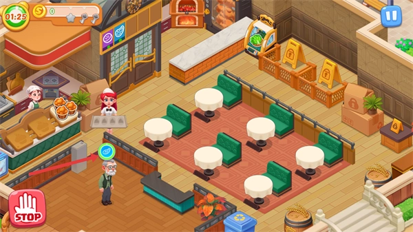 进入关卡后,请先查看【目标】——需要在【01:30】的时间限制内赚取【235金币】,随后即可准备开启餐厅营业。