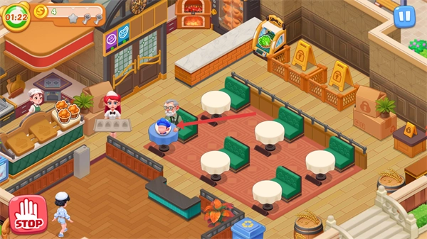 3、将制作好的餐品送至【顾客桌位】,完成订单交付并获取对应金币收益。